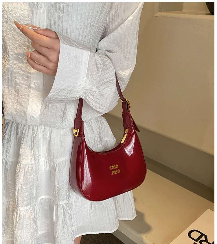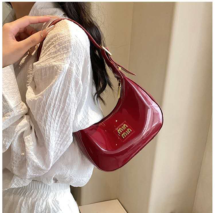 Glossy wine red shoulder bag