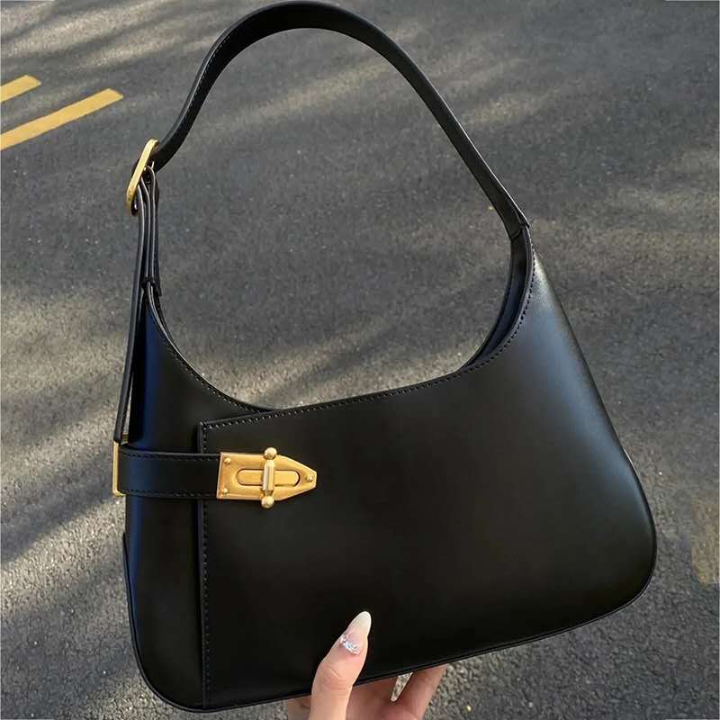 Lock Detail: Stylish gold twist-lock buckle accent on the side strap.