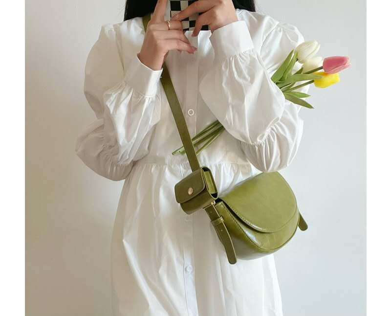 Design: Moon-shaped saddle bag with a smooth curved flap.